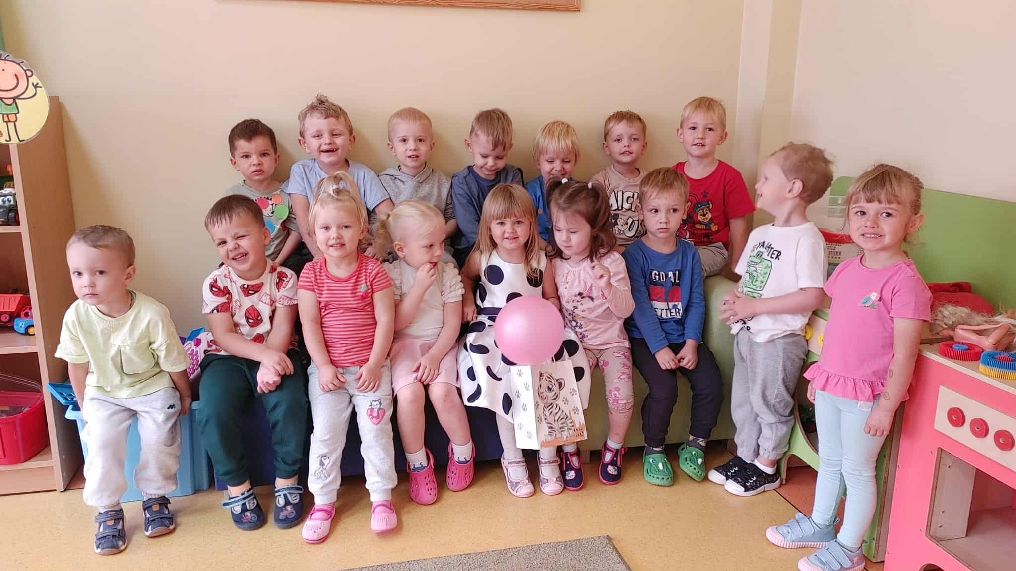 Jesteśmy jedną z najmłodszych grup w przedszkolu. Pani Ewa i Pani Marta w oparciu o literaturę dziecięcą organizują nam ciekawe zajęcia i starają się zaspokoić naszą ciekawość. Lubimy różnego rodzaju gry i zabawy ruchowe organizowane zarówno w sali przedszkolnej jak i na placu zabaw. Chętnie uczymy się zasad zgodnego współżycia w grupie. Staramy się być samodzielni i koleżeńscy. Z chęcią uczymy się nowych wierszyków, piosenek i rymowanek.